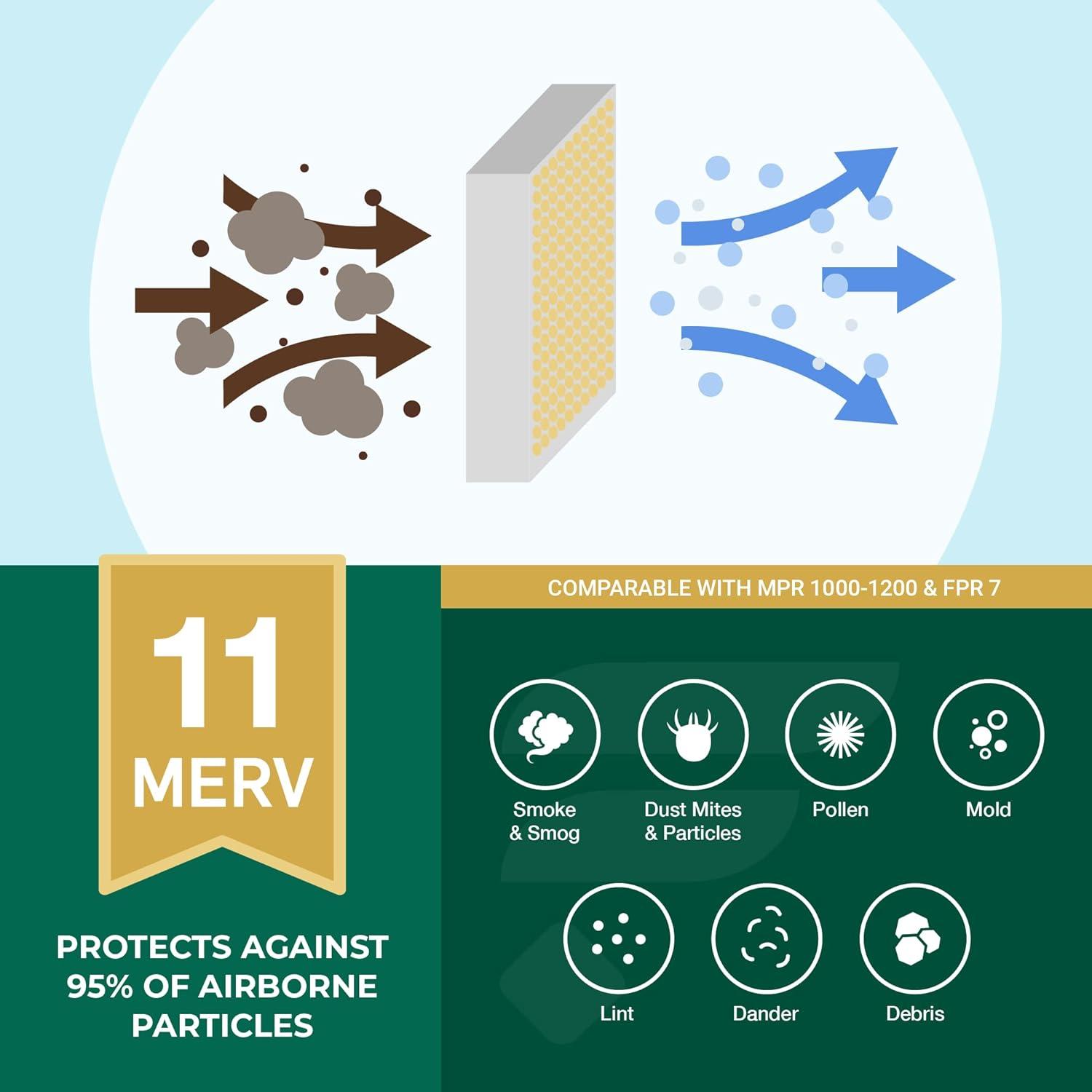 MERV 11 PERFORMANCE: Protect your home or business from allergens, pets, and more with MERV 11 synthetic media (comparable with MPR 1200 & FPR 7) that captures 95% of dust without restricting air flow