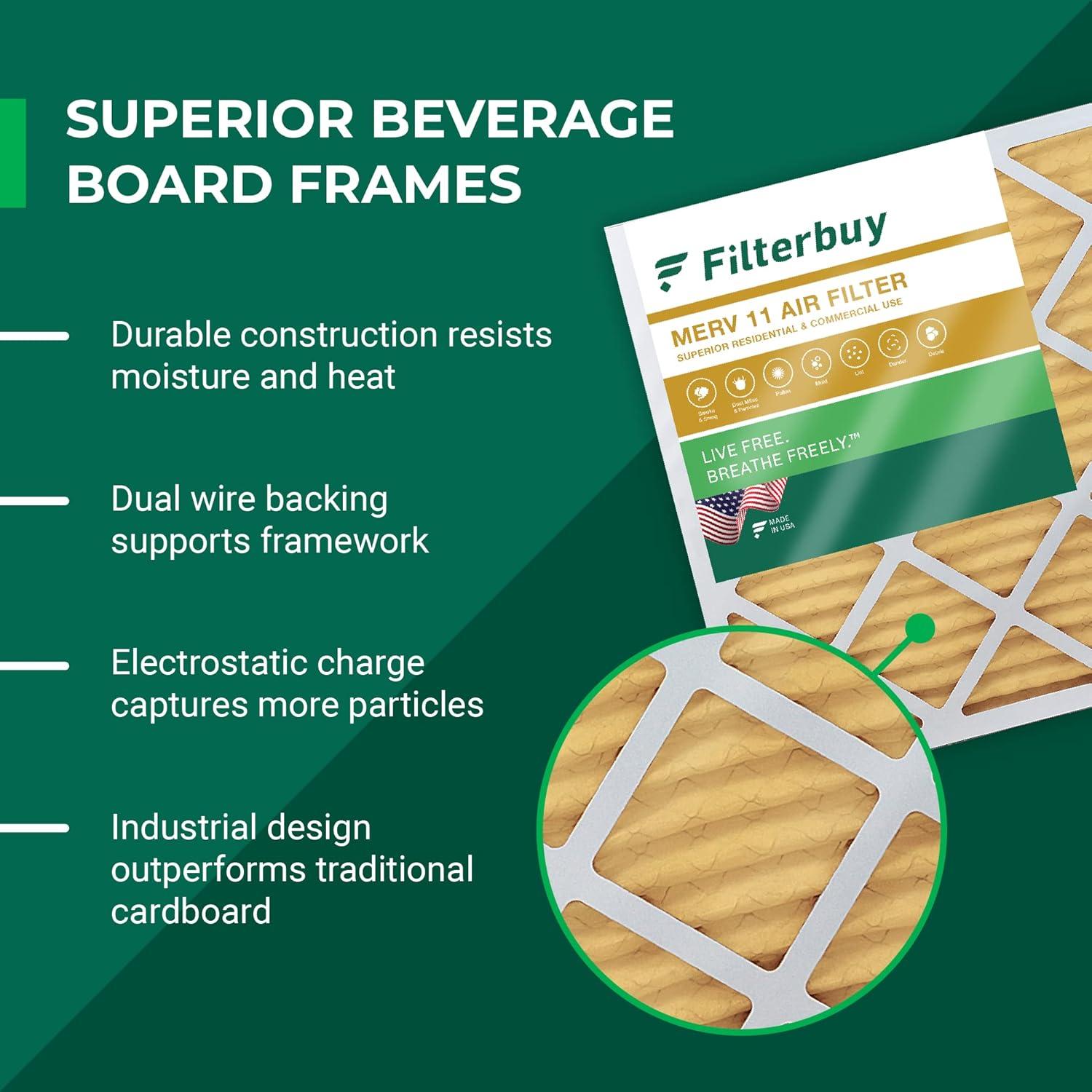 Filterbuy 16.5x22x4 Air Filter MERV 11 (MPR 1200) Allergen Defense Replacement (1-Pack), Electrostatic Pleated HVAC AC Furnace Filters, Made in USA (Actual Size: 16.50 x 22.00 x 3.63)