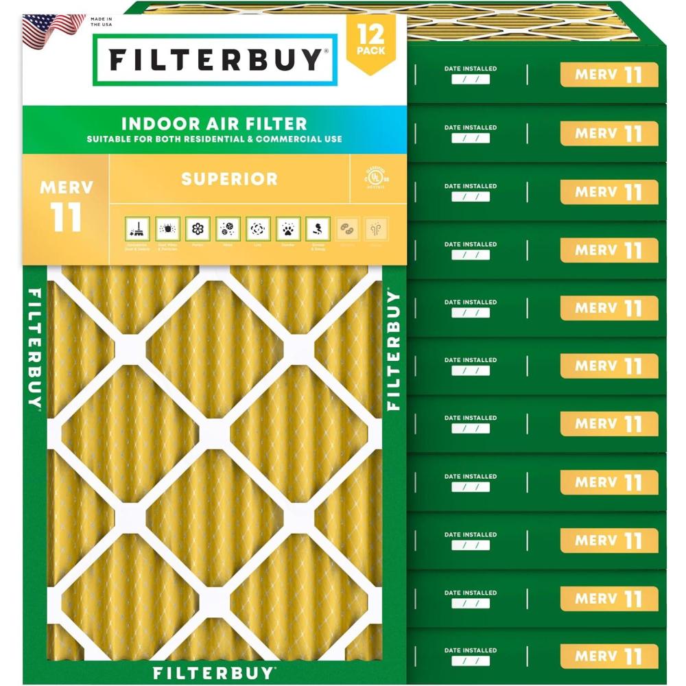 Filterbuy 19.88×21.5×2 Air Filter MERV 11 (MPR 1200) Allergen Defense Replacement (12-Pack), Electrostatic Pleated HVAC AC Furnace Filters, Made in USA (Actual Size: 19.88 x 21.50 x 1.75)