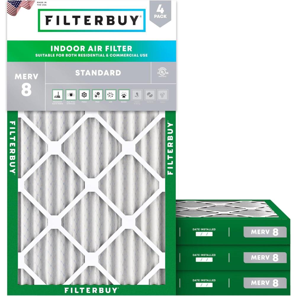 Be the first to review “Filterbuy 15×30.5×2 Air Filter MERV 8 Essential Dust & Allergy Defense (4-Pack), Electrostatic Pleated HVAC AC Furnace Filters Replacement, Made in USA (Actual Size: 15.00 x 30.50 x 1.75)”
