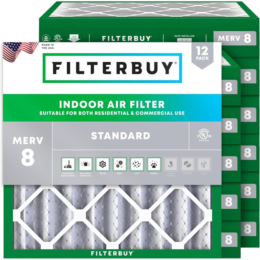 Filterbuy 17.25×17.25×4 Air Filter MERV 8 (MPR 700) Dust Defense Replacement (12-Pack), Electrostatic Pleated HVAC AC Furnace Filters, Made in USA (Actual Size: 17.25 x 17.25 x 3.63)