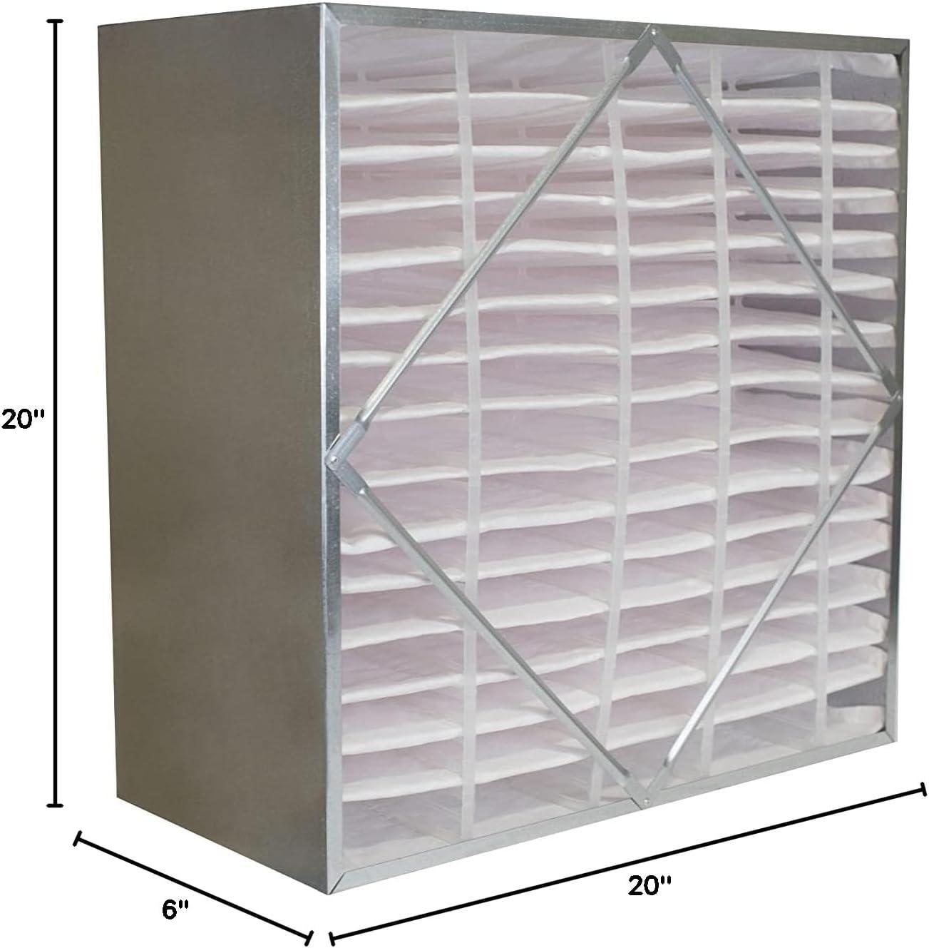 The Filterbuy replacement rigid cell box air filter 20x20x6 without header (actual size: 19.38″ x 19.38″ x 5.75″) ensures that your HVAC system is circulating the cleanest air possible to help preserve your budget and healthy lifestyle. The extended surface area created from the deeper pleats make them perfect for commercial settings (particularly in variable air volume systems) due to their enhanced ability to collect dust and other contaminants. MERV 13 synthetic media is recommended with its capability to trap 98% of dust particles while protecting your business from bacteria, smoke, smog, lint, pollen, mold, dander, and other forms of debris without impacting air flow. High quality construction features an ultra-fine design that functions exceptionally in humid environments while eliminating fiber shedding and prolonging the products lifespan by three times that of fiberglass models. Plus, our industrial grade galvanized steel frames are paired with a wire mesh backing and plastic fingers that ensure rigidity by withstanding fluctuations in air flow. To top it off, all our components are 100% manufactured within the United States and designed with recyclable materials, providing an eco-friendly alternative to enhancing your air quality.