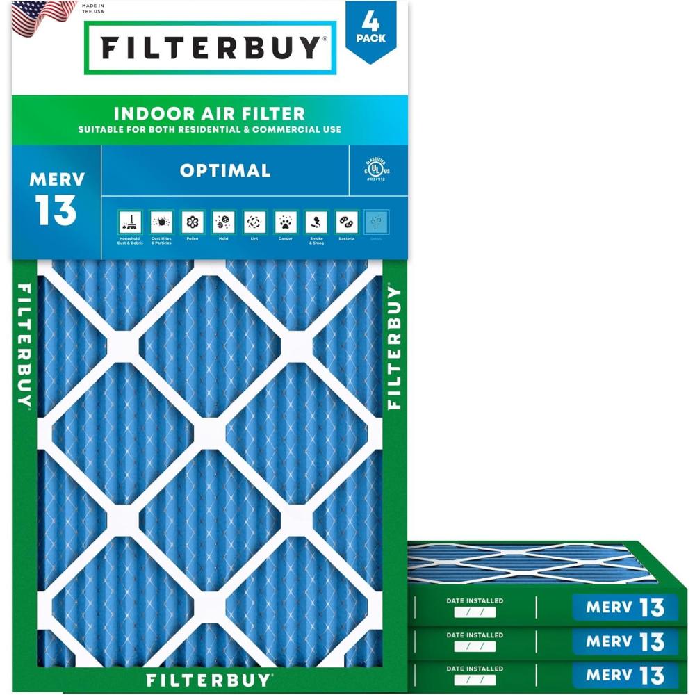 Be the first to review “Filterbuy 20x24x2 Air Filter MERV 13 Optimal Smoke & Allergy Defense (4-Pack), Electrostatic Pleated HVAC AC Furnace Filters Replacement, Made in USA (Actual Size: 19.38 x 23.38 x 1.75)(8x20x1)”