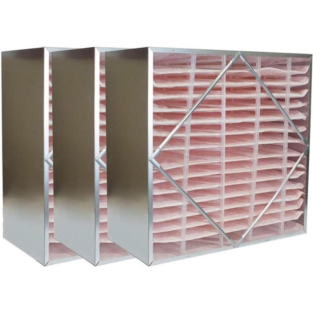 The Filterbuy replacement rigid cell box air filter 24x24x6 without header (actual size: 23.38″ x 23.38″ x 5.75″) ensures that your HVAC system is circulating the cleanest air possible to help preserve your budget and healthy lifestyle. The extended surface area created from the deeper pleats make them perfect for commercial settings (particularly in variable air volume systems) due to their enhanced ability to collect dust and other contaminants. MERV 11 synthetic media is recommended with its capability to trap 95% of dust particles while protecting your business from smoke, smog, lint, pollen, mold, dander, and other forms of debris without impacting air flow. High quality construction features an ultra-fine design that functions exceptionally in humid environments while eliminating fiber shedding and prolonging the products lifespan by three times that of fiberglass models. Plus, our industrial grade galvanized steel frames are paired with a wire mesh backing and plastic fingers that ensure rigidity by withstanding fluctuations in air flow. To top it off, all our components are 100% manufactured within the United States and designed with recyclable materials, providing an eco-friendly alternative to enhancing your air quality.